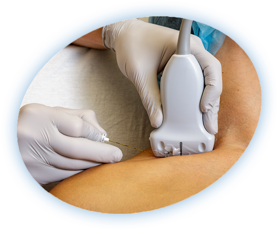 Trong kỹ thuật quanh khớp, vị trí tiêm chính xác vẫn chưa được thống nhất hoàn toàn; các bác sĩ đề xuất tiêm ở các độ sâu khác nhau để đạt được mức độ giảm đau mong muốn. Thông thường, màn tăng sáng (fluoroscopy) được sử dụng để hướng dẫn kim đến vị trí chính xác trong kỹ thuật tiêm nội khớp. Đối với tiêm quanh khớp, hướng dẫn bằng siêu âm có thể được sử dụng. Thuốc cản quang có thể được dùng để hỗ trợ dẫn đường cho kim đến đúng vị trí và tránh tiêm vào mạch máu.